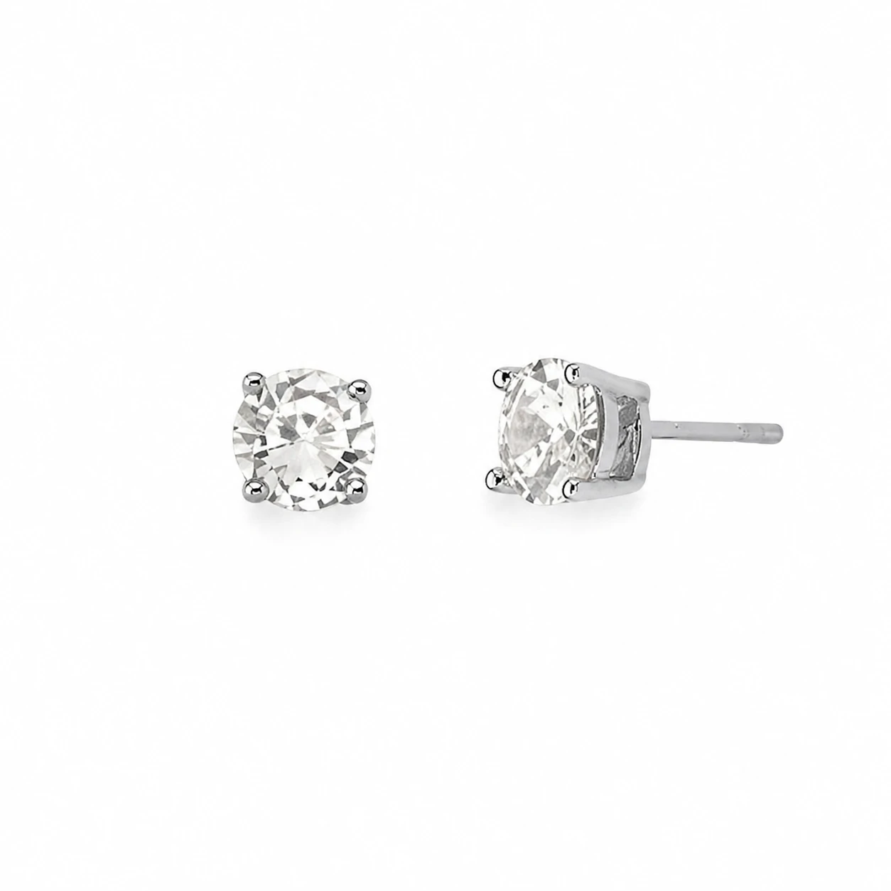 Brinco solitário com zircônia redonda e caixa quadrada em ródio, uma peça clássica, elegante e indispensável para quem ama sofisticação atemporal.