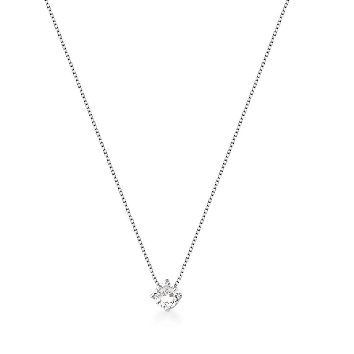 Colar solitário com corrente veneziana e zircônia central, uma peça clássica e sofisticada que traduz elegância e delicadeza em cada detalhe.